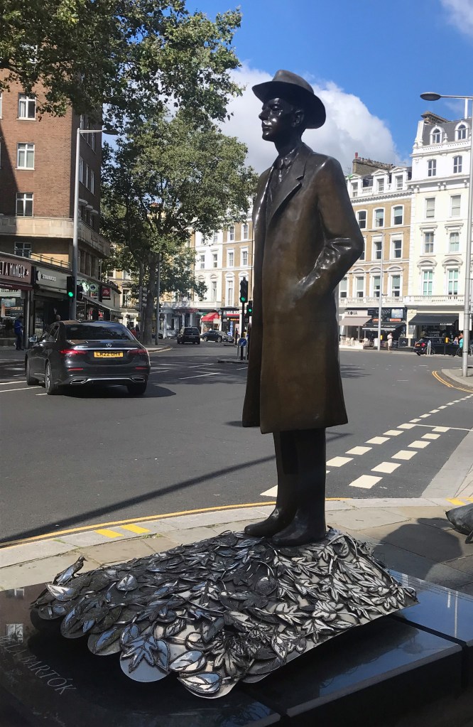 At South Kensington (on the south side of the station), Imre Varga’s statue of Béla Bartók brightens the streetscape: the composer gazes towards the flats which he occupied when he was living in London.