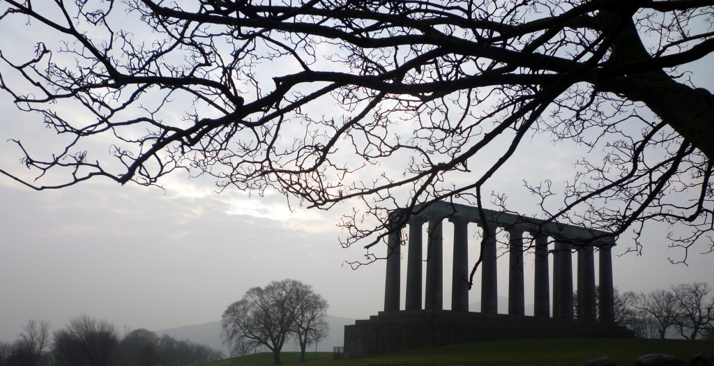 The monument that looks like a coffee-press is to the philosopher Dugald Stewart, and is modelled on the Temple of the Winds in Athens. The lookout tower is a memorial to Lord Nelson. The building off to the north was Edinburgh’s first astronomical observatory