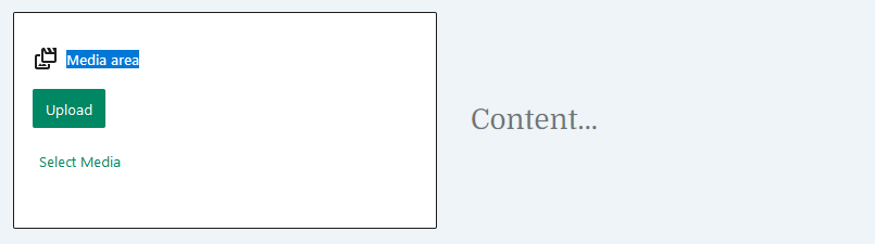 Click on the plus sign in the middle of the line separating the entries above and below your target location, and select Media and text from the list of block types. If you do not see it in the panel of block types, just type the block type in the search box above the set of options. This will give you the new block template (below).